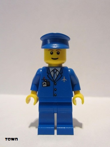 lego 2011 mini figurine air046b Airport Blue 3 Button Jacket and Tie, Blue Hat, Blue Legs, Reddish Brown Eyebrows